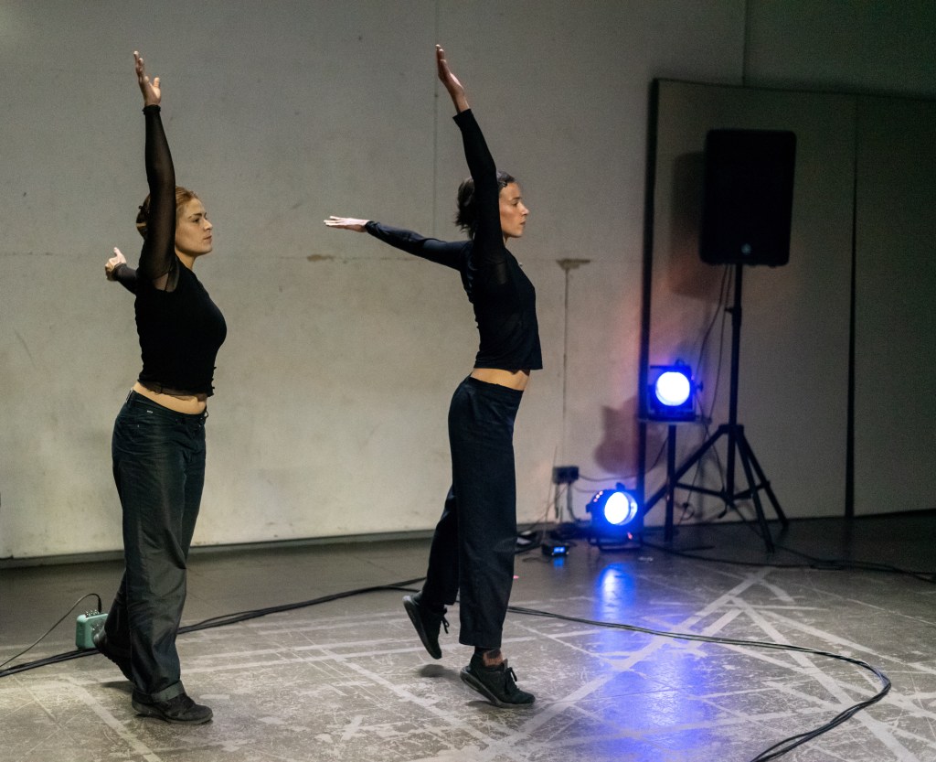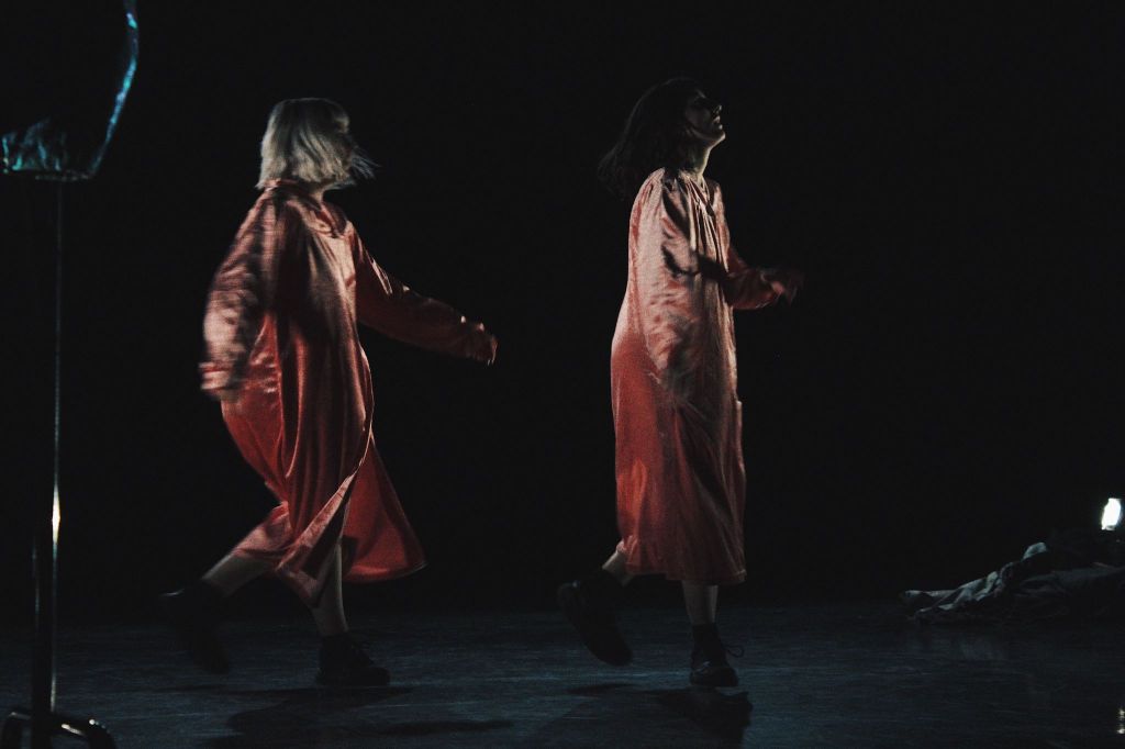 Le mouvement se construit de façon complexe à l’image de ses états psychiques. Par une multitude de contraintes, d’empêchements, la danse nait des espaces qui lui reste. Les espaces entre les choses sont les seuls chemins possibles. Entre le mental et le physique, entre la spontanéité et le contrôle, entre les corps, entre les espaces des corps..